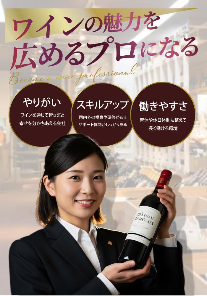 当社はお客様に寄り添い、心から勧められる物だけを選択し、それを正しく説明し、お客様に届けることができていると思います。スタッフ同士の仲が良く、トップ生産者のワインを試飲したり、セミナーを受ける機会が多いので、成長したい人にはピッタリです!
